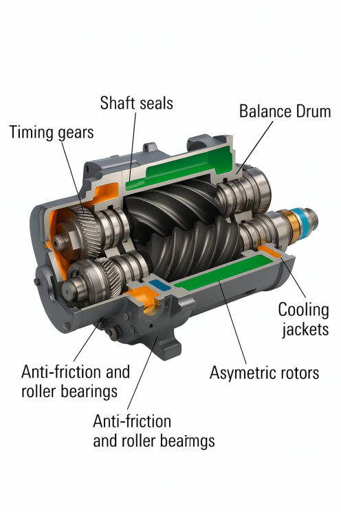 🔹 ۲. کمپرسور اسکرو (Screw Compressor)