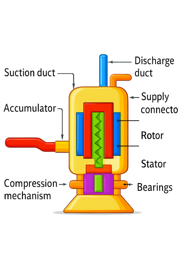 ساختار: پره‌های دوار برای فشرده‌سازی مبرد.