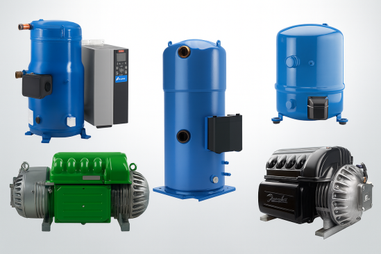 کمپرسور هرمتیک پیستونی (Reciprocating Hermetic)پرکاربرد در یخچال‌ها، فریزرها، سیستم‌های تجاری کوچک.
